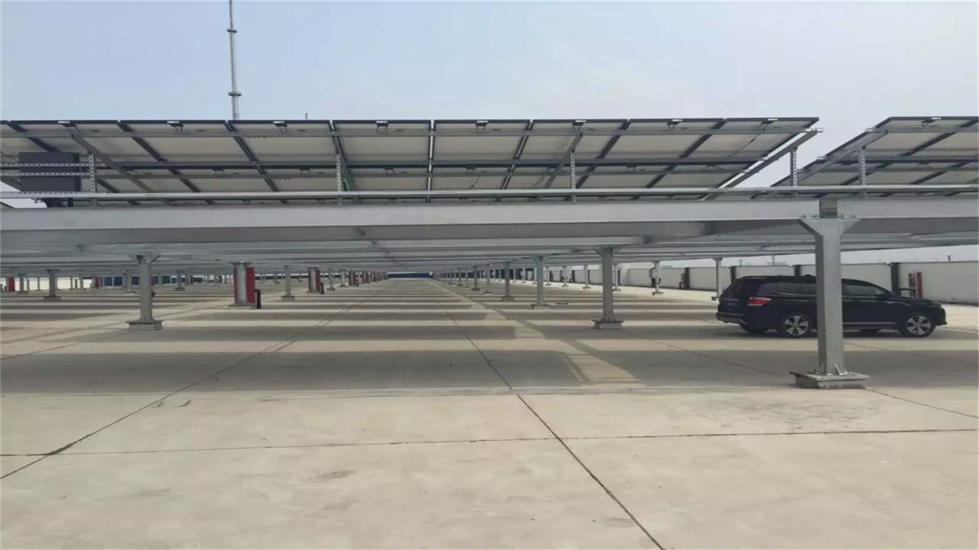 普通停車棚停車的功能,在停車棚頂太陽能光伏車棚是未來的一個發展方向,其發展前景十分廣闊。部鋪裝太陽能電池板將太陽能電池板與建筑屋頂相結合,既起到了發電的作用,還起到了隔熱﹑防雨﹑遮陽的功能,日常生活中汽車等交通工具的增多,使得太陽能光伏車棚越來越多地出現在我們的身邊。太陽能光伏車棚從字面上理解就是太陽能光伏發電加上車棚,實際上由支架系統和光伏系統組成,為人們打造便利的停車場地的同時能有效利用太陽能發電。太陽能光伏車棚的眾多優點是其得到推廣的重要原因。